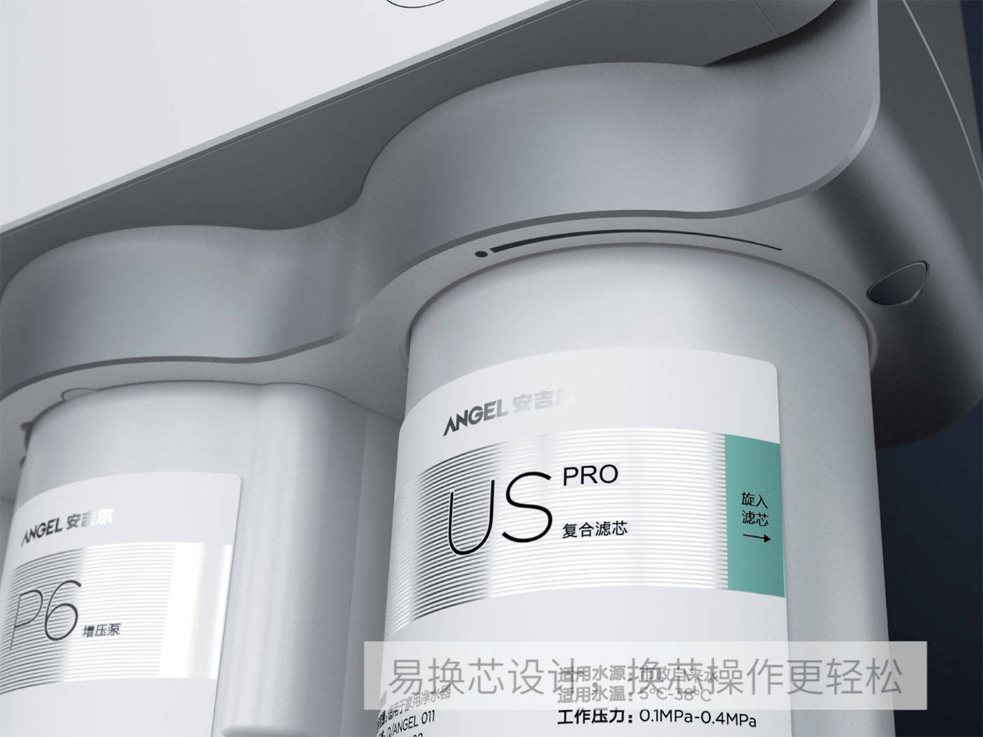 After designing wall and desk water dispensers, Angel asked us to tackle the design of their bestseller: the Ax-family of water purifiers. Either a 3-stage or a 4-stage water filter, most Chinese households would connect these below their sink baisin to their kitchen water faucet. Providing a safe source of drinking water when preparing foods or making tea, the A-filter-family consists of 4 differently positioned products. The A1, A4, A6, A8 each have different sediment and chemical based filter cartridges, suitable to clean polluted water to a safe degree. Although Angel aimed at a full redesign of their most successful product we were asked to keep its form architecture similar to the previous A6 ensuring that customers can easily recognise the bestseller. Additionally to the Ax family our team had to create a color-coded label system for the 8 different cartridge types and a standalone kitchen faucet.
